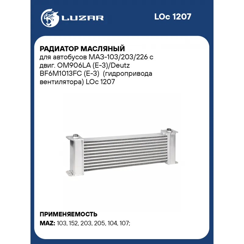 Радиатор масляный для автобусов МАЗ-103/203/226 с двиг. OМ906LA (E-3)/Deutz BF6M1013FC (E-3) (гидропривода вентилятора) Характеристики: Артикул: LOc 1207 OEM номера: 107М-1308205-65, 107M130820565 Материал: алюминий Трансмиссия: MT Кондиционер: +/- Габариты изделия, мм: 533*176*62 Сопутствующий товар: Радиаторы охлаждения: LRc 1201; LRc 1203 Сопутствующий товар: Радиаторы интеркулера (онв): LRIC 1201; LRIC 1209; LRIC 1203 Тип радиатора: маслоохладитель гидропривода вентилятора Подходит для авто: МАЗ 103, 152, 203, 205, 104, 103, 107, 152 Для проверки применяемости отправьте VIN автомобиля через вкладку "Есть вопросы о товаре?" Комплектация: Радиатор масляный Паспорт изделия Гарантия: от 1 года.