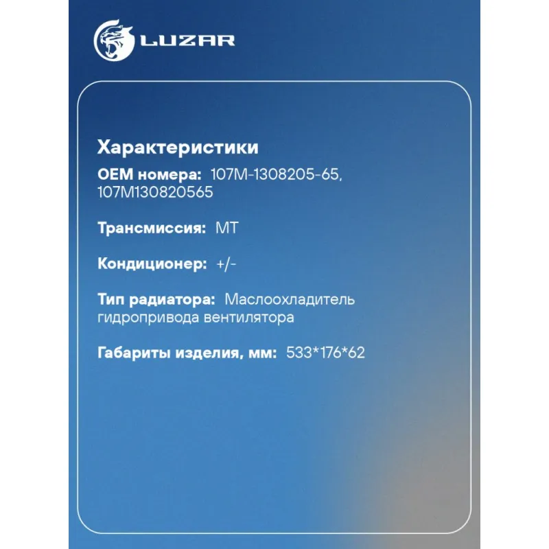 | Сопутствующий товар: Радиаторы интеркулера (онв) | LRIC 1201; LRIC 1209; LRIC 1203 |