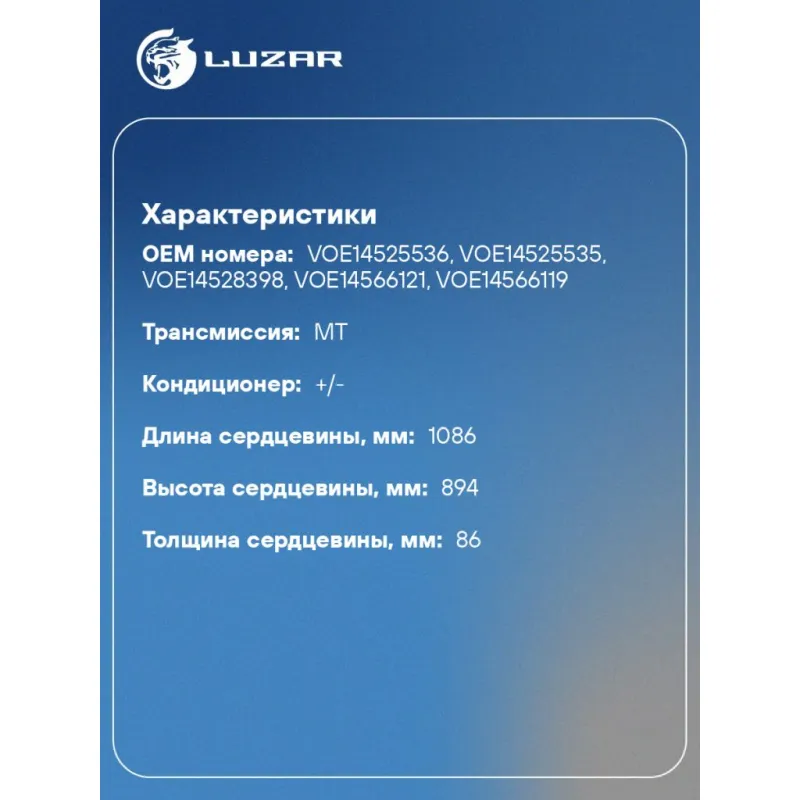 Радиатор охлаждения для экскаватора Volvo EC240B/EC290B с дв. D7 (LRc 3148) Характеристики: Артикул: LRc 3148 OEM номера: VOE14525536, VOE14525535, VOE14528398, VOE14566121, VOE14566119 Трансмиссия: MT Кондиционер: +/- Длина сердцевины, мм: 1086 Высота сердцевины, мм: 894 Толщина сердцевины, мм: 86 Тип сердцевины: паяная Материал сердцевины: алюминий Материал бачков: алюминий Сопутствующие товары:: Loc 3104, LRAC 3148 Дополнительная информация: Алюминиевая сердцевина в стальной раме Подходит для авто: Volvo EC240B, EC290B Для проверки применяемости отправьте VIN автомобиля через вкладку "Есть вопросы о товаре?" Комплектация: Радиатор охлаждения - 1 шт Крышка радиатора - 1 шт Паспорт изделия - 1 шт Гарантия: от 1 года.