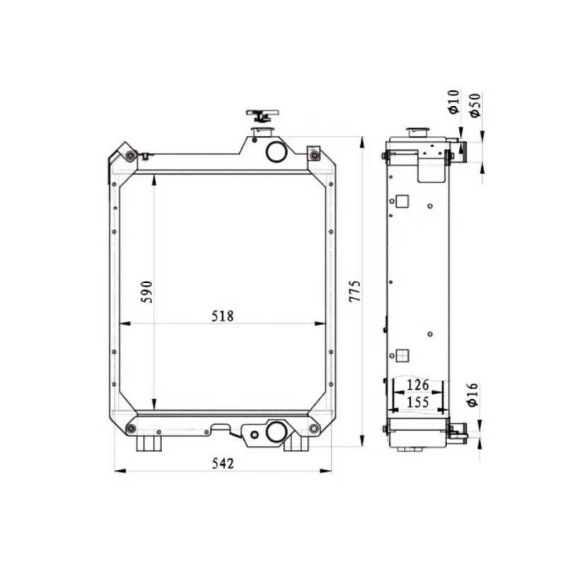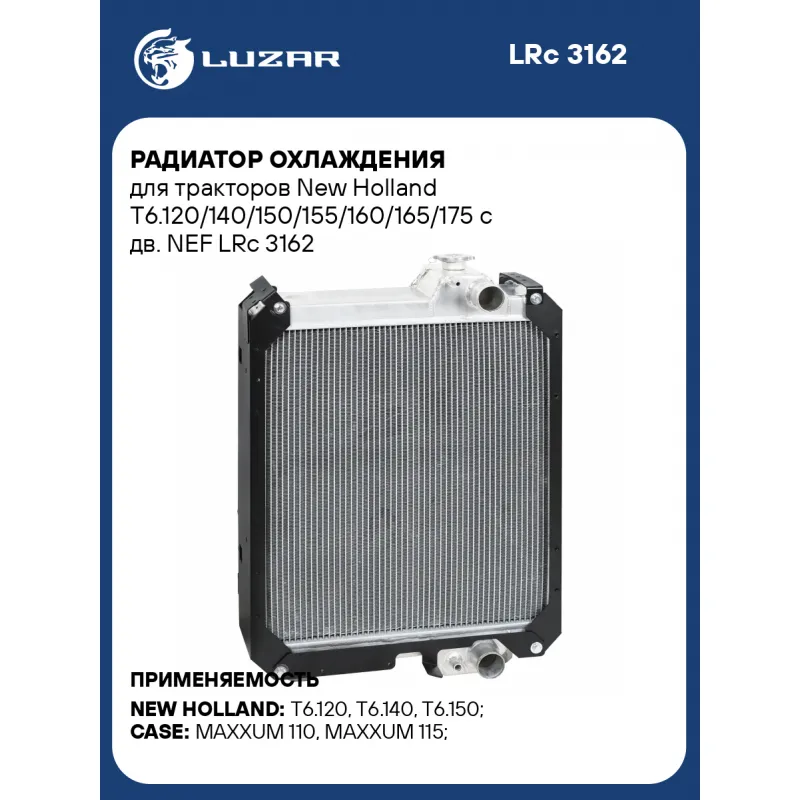 Радиатор охлаждения для тракторов New Holland T6.120/140/150/155/160/165/175 с дв. NEF Характеристики: Артикул: LRc 3162 OEM номера: 87737094, 84485111, 84485110, 87574206, 87574213 Трансмиссия: MT Кондиционер: +/- Длина сердцевины, мм: 542 Высота сердцевины, мм: 590 Толщина сердцевины, мм: 126 Тип сердцевины: паяная, 5-ти рядная Материал сердцевины: Алюминий Материал бачков: Алюминий Подходит для авто: NEW HOLLAND T6.120, T6.140, T6.150, T6.155, T6.160, T6.165, T6.175 CASE MAXXUM 110, MAXXUM 115, MAXXUM 120, MAXXUM 125, MAXXUM 130, MAXXUM 140 Для проверки применяемости отправьте VIN автомобиля через вкладку "Есть вопросы о товаре?" Комплектация: Радиатор охлаждения - 1 шт Паспорт изделия - 1 шт Гарантия: от 1 года.