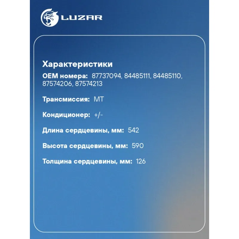 | Тип сердцевины | паяная, 5-ти рядная |
