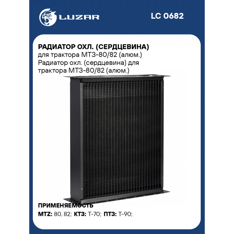 Радиатор охл. (сердцевина) для трактора МТЗ-80/82 (алюм.) Характеристики: Артикул: LC 0682 OEM номера: 70У.1301.020-1, 161К.1301020, 70У-1301020, 161.1301020 Трансмиссия: MT Кондиционер: +/- Размер сердцевины, мм: 510*435*92 Материал сердцевины: алюминий Тип сердцевины: 4х рядная, паяная, пластинчато-ленточная Подходит для авто: MTZ 80, 82 КТЗ Т-70 ПТЗ Т-90 Для проверки применяемости отправьте VIN автомобиля через вкладку "Есть вопросы о товаре?" Комплектация: Сердцевина радиатора Паспорт изделия Гарантия: от 1 года.