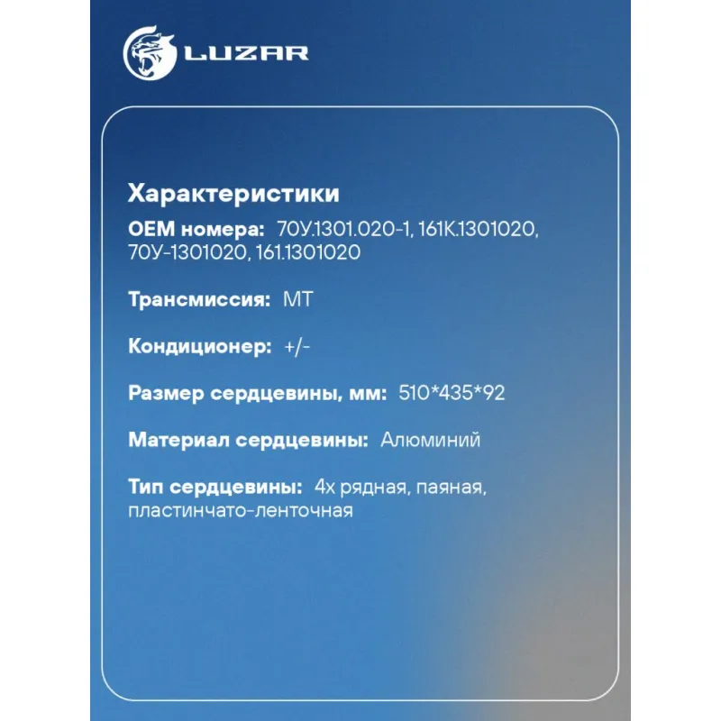 | Тип сердцевины | 4х рядная, паяная, пластинчато-ленточная |