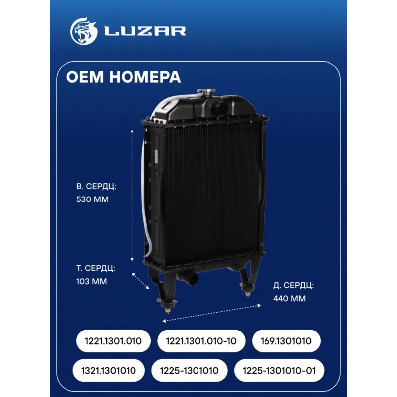Радиатор охлаждения алюм. для трактора МТЗ-1221 (5-ти ряд.) Характеристики: Артикул: LRc 06221 OEM номера: 1221.1301.010, 1221.1301.010-10, 169.1301010, 1321.1301010, 1225-1301010, 1225-1301010-01 Трансмиссия: MT Кондиционер: +/- Длина сердцевины, мм: 440 Высота сердцевины, мм: 530 Толщина сердцевины, мм: 103 Тип сердцевины: паяная, 5-ти рядная Материал сердцевины: алюминий Материал бачков: сталь Подходит для авто: MTZ 1221, 1222 Для проверки применяемости отправьте VIN автомобиля через вкладку "Есть вопросы о товаре?" Комплектация: Радиатор охлаждения Паспорт изделия Гарантия: от 1 года.