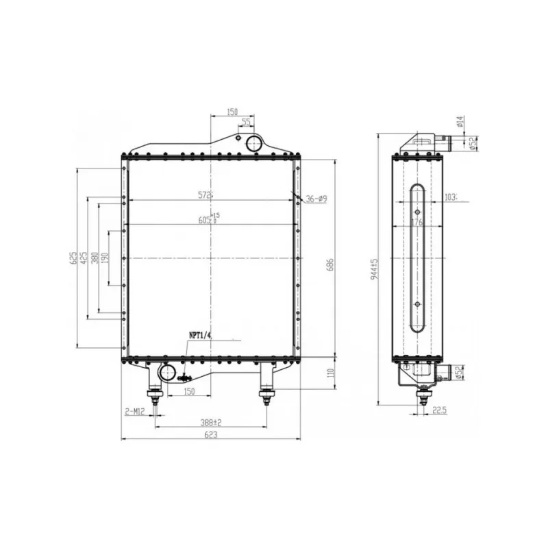 Радиатор охлаждения алюм. для трактора МТЗ-2022 (5ти-ряд.) Характеристики: Артикул: LRc 06022 OEM номера: 2022-1301.010, 1622.1301010 Трансмиссия: MT Кондиционер: - Длина сердцевины, мм: 572 Высота сердцевины, мм: 686 Толщина сердцевины, мм: 103 Тип сердцевины: паяная, 5-ти рядная Материал сердцевины: алюминий Материал бачков: сталь Подходит для авто: MTZ 2022 Для проверки применяемости отправьте VIN автомобиля через вкладку "Есть вопросы о товаре?" Комплектация: Радиатор охлаждения Паспорти изделия Гарантия: от 1 года.