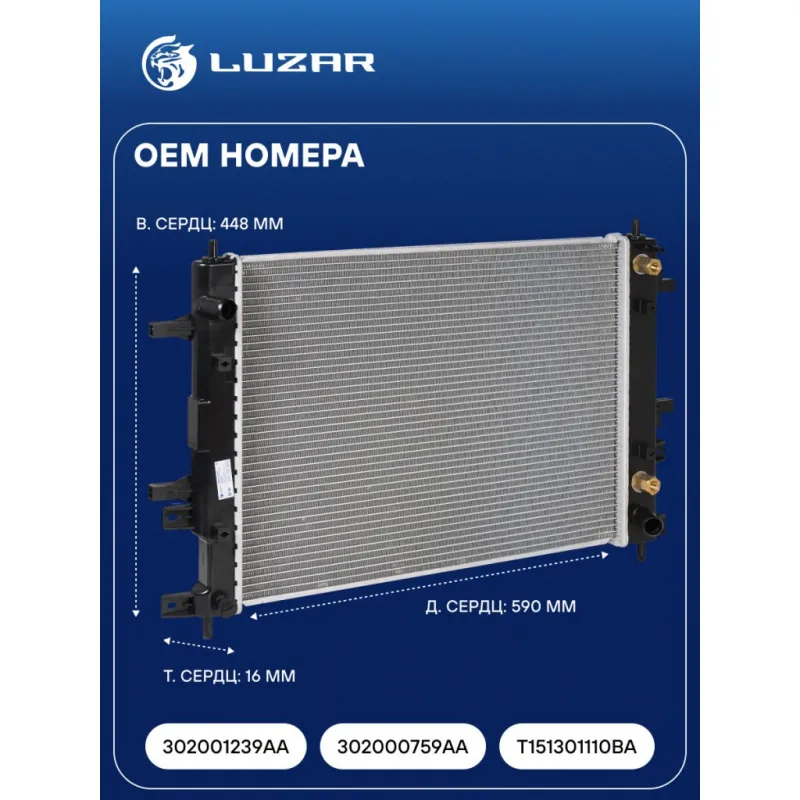 Радиатор охлаждения для а/м Chery Tiggo 4 (17-)/4 Pro (20-)/7 (16-)/8 (18-)/8 Pro (20-) CVT Характеристики: Артикул: LRc 3028 OEM номера: 302001239AA, 302000759AA, T151301110BA Трансмиссия: AT Кондиционер: +/- Длина сердцевины, мм: 590 Высота сердцевины, мм: 448 Толщина сердцевины, мм: 16 Тип сердцевины: паяная Материал сердцевины: алюминий Материал бачков: пластик Сопутствующий товар: Электровентиляторы охлаждения: LFK 3017 Сопутствующий товар: Радиаторы кондиционера (конденсеры): LRAC 3037; LRAC 3036 Подходит для авто: Chery Tiggo 4 (17-), Tiggo 7 (16-), Tiggo 7 Pro (20-), Tiggo 8 (18-), Tiggo 8 (18-), Tiggo 8 Pro (21-) Для проверки применяемости отправьте VIN автомобиля через вкладку "Есть вопросы о товаре?" Комплектация: Радиатор охлаждения Паспорт изделия Гарантия: от 1 года.