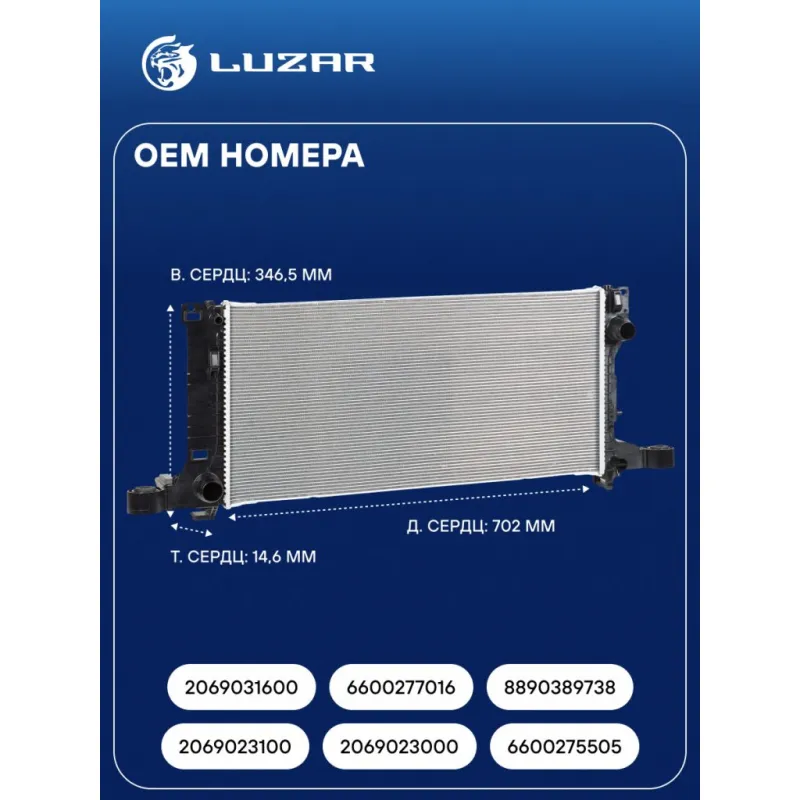 Радиатор охлаждения для а/м Geely Tugella (20-)/Monjaro (21-)/Atlas II (23-) 2.0T AT Характеристики: Артикул: LRc 3038 OEM номера: 2069023100, 2069023000, 6600275505, 2069031600, 6600277016, 8890389738 Трансмиссия: MT/AT Кондиционер: +/- Длина сердцевины, мм: 702 Высота сердцевины, мм: 346,5 Толщина сердцевины, мм: 14,6 Тип сердцевины: паяная Материал сердцевины: алюминий Материал бачков: пластик Сопутствующий товар: Радиаторы кондиционера (конденсеры): LRAC 3026 Подходит для авто: Geely Monjaro (21-), Atlas (23-), Tugella (19-) Для проверки применяемости отправьте VIN автомобиля через вкладку "Есть вопросы о товаре?" Комплектация: Радиатор охлаждения - 1 шт Паспорт изделия - 1 шт Гарантия: от 1 года.