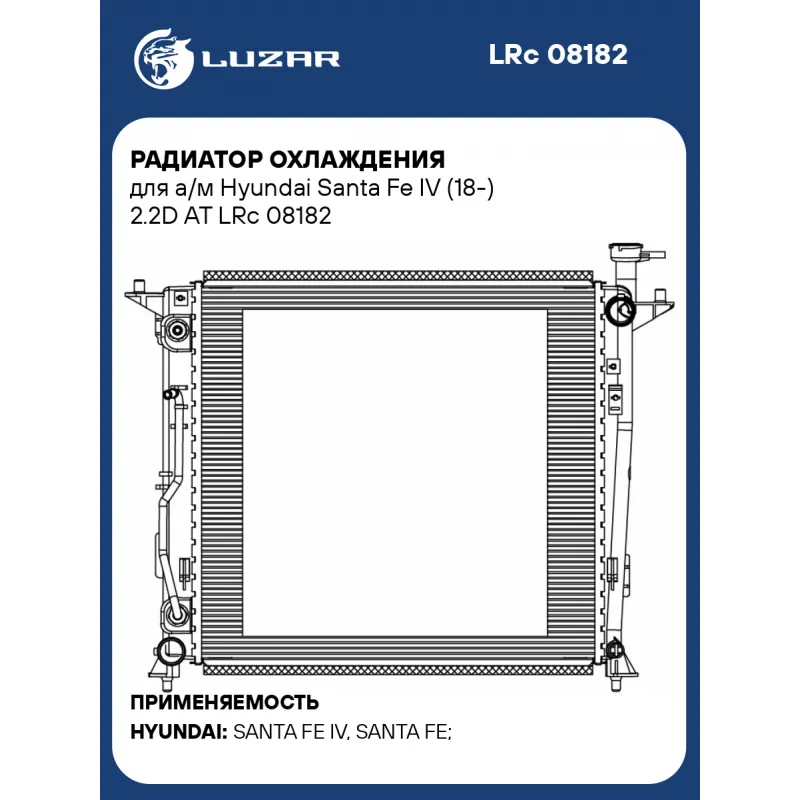 Радиатор охлаждения для а/м Hyundai Santa Fe IV (18-) 2.2D AT Характеристики: Артикул: LRc 08182 OEM номера: 25310S1190 Трансмиссия: MT/AT Комплектация: Радиатор охлаждения Паспорт изделия Гарантия: от 1 года.