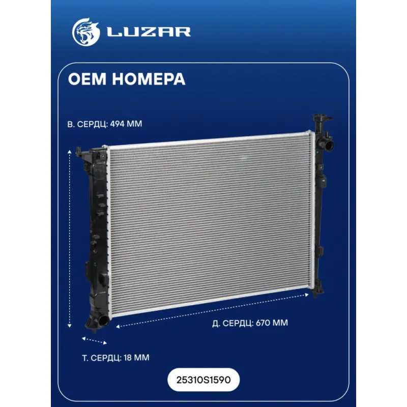 Радиатор охлаждения для а/м Hyundai Santa Fe IV (18-) 2.4i AT Характеристики: Артикул: LRc 08181 OEM номера: 25310S1590 Трансмиссия: AT Кондиционер: +/- Материал сердцевины: алюминий Материал бачков: пластик Тип сердцевины: паяная Сопутствующий товар: Радиаторы кондиционера (конденсеры): LRAC 0881 Длина сердцевины, мм: 670 Толщина сердцевины, мм: 18 Высота сердцевины, мм: 494 Подходит для авто: Hyundai Santa Fe IV (18-) Для проверки применяемости отправьте VIN автомобиля через вкладку "Есть вопросы о товаре?" Комплектация: Радиатор охлаждения Паспорт изделия Гарантия: от 1 года.