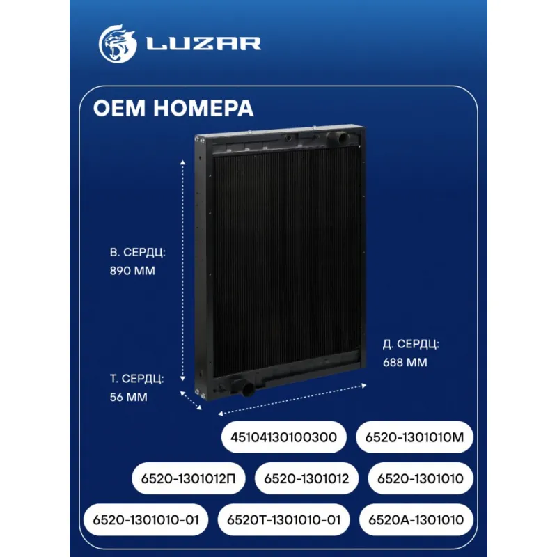 Радиатор охлаждения для а/м КАМАЗ 6520 (медно-латунный, 3-х рядный) Характеристики: Артикул: LRc 0725 OEM номера: 6520-1301012П, 6520-1301012, 6520-1301010, 6520-1301010-01, 6520Т-1301010-01, 6520А-1301010, 45104130100300, 6520T-1301010-01, 6520A-1301010, 6520-1301010M, 6520-1301010М Трансмиссия: MT Кондиционер: - Длина сердцевины, мм: 688 Высота сердцевины, мм: 890 Толщина сердцевины, мм: 56 Тип сердцевины: паяная, 3-х рядная Материал сердцевины: медь Материал бачков: латунь Сопутствующий товар: Патрубки охлаждения (комплект): LPK 0720 Сопутствующий товар: Радиаторы интеркулера (онв): LRIC 0765 Дополнительная информация: ширина трубок сердцевины 16мм Примечание: аналог LRc 0765b; LRc 07650 с алюм. сердцевиной Подходит для авто: КамаАЗ 43118, 43502, 53605, 5460, 6350, 65111, 65201, 6520, 6522, 6460, 65225, 5360, 5460, 6350 NefAZ 5299 Для проверки применяемости отправьте VIN автомобиля через вкладку "Есть вопросы о товаре?" Комплектация: Радиатор охлаждения - 1 шт Паспорт изделия - 1 шт Гарантия: от 1 года.