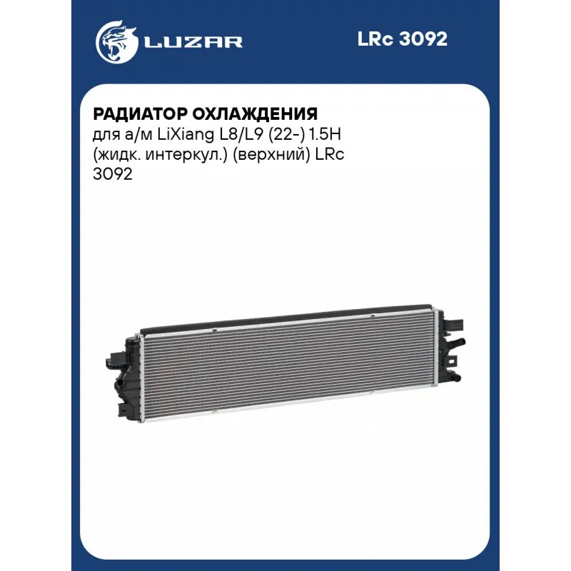 Радиатор охлаждения для а/м LiXiang L8/L9 (22-) 1.5H (жидк. интеркул.) (верхний) Характеристики: Артикул: LRc 3092 OEM номера: X0121270026 Трансмиссия: MT/AT Кондиционер: +/- Материал сердцевины: алюминий Материал бачков: пластик Тип сердцевины: паяная Сопутствующий товар:: LRc 3090; LRc 3091 Длина сердцевины, мм: 703 Толщина сердцевины, мм: 22 Высота сердцевины, мм: 167,5 Комплектация: Радиатор охлаждения - 1 шт Паспорт изделия - 1 шт Гарантия: от 1 года.