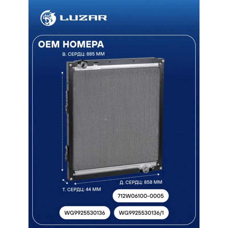 Радиатор охлаждения для а/м Sitrak C7H/Howo T5G с дв. MC13 (в блоке охл. 712W061000005) Характеристики: Артикул: LRc 3052 OEM номера: WG9925530136, WG9925530136/1, 712W06100-0005 Трансмиссия: MT/AT Кондиционер: +/- Материал сердцевины: алюминий Материал бачков: алюминий Тип сердцевины: паяная, 2-х рядная Сопутствующий товар: Радиаторы интеркулера (онв): LRIC 3032 Длина сердцевины, мм: 858 Толщина сердцевины, мм: 44 Высота сердцевины, мм: 885 Применяемость: входит в состав блока охлаждения 712W06100-0005 Подходит для авто: SITRAK C7H Для проверки применяемости отправьте VIN автомобиля через вкладку "Есть вопросы о товаре?" Комплектация: Радиатор охлаждения - 1 шт Паспорт изделия - 1 шт Гарантия: от 1 года.