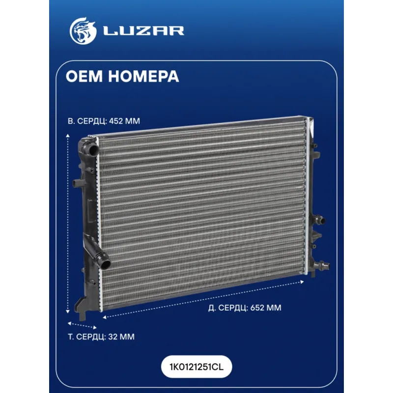 Радиатор охлаждения для а/м Skoda Yeti (09-)/VW Caddy (04-)/Audi A3 (03-) 1.2i (сборный) Характеристики: Артикул: LRc 1814 OEM номера: 1K0121251CL Трансмиссия: MT/AT Кондиционер: +/- Длина сердцевины, мм: 652 Высота сердцевины, мм: 452 Толщина сердцевины, мм: 32 Тип сердцевины: сборная Материал сердцевины: алюминий Материал бачков: пластик Сопутствующий товар: Электровентиляторы охлаждения: LFK 18K2; LFc 18K2 Сопутствующий товар: Электровентиляторы кондиционера: LFAC 18K0 Сопутствующий товар: Радиаторы кондиционера (конденсеры): LRAC 1811J Сопутствующий товар: Бачки расширительные: LET 1810 Подходит для авто: Skoda Octavia A5 (04-), Yeti (09-) Volkswagen Caddy (04-), Beetle (10-), Golf VI (08-) Audi A3 (07-) Для проверки применяемости отправьте VIN автомобиля через вкладку "Есть вопросы о товаре?" Комплектация: Радиатор охлаждения Паспорт изделия Гарантия: от 1 года.
