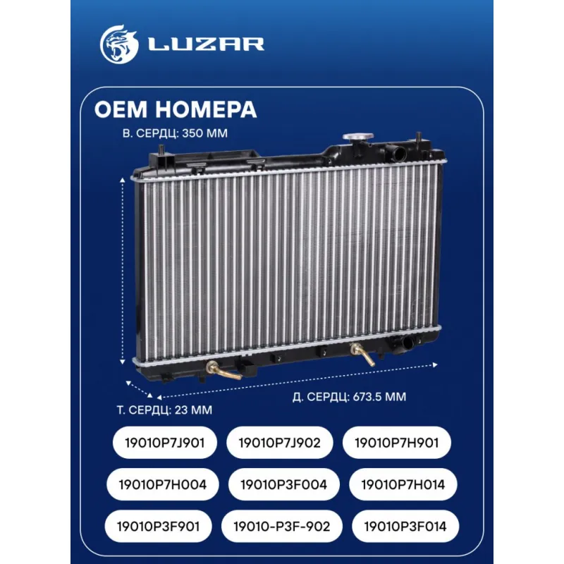 Радиатор охлаждения для автомобилей CR-V (95-) 2.0i AT Характеристики: Артикул: LRc 2317 OEM номера: 19010P3F901, 19010-P3F-902, 19010P3F014 , 19010P7H004, 19010P3F004 , 19010P7H014 , 19010P7J901, 19010P7J902 , 19010P7H901 Трансмиссия: MT/AT Кондиционер: +/- Длина сердцевины, мм: 673.5 Высота сердцевины, мм: 350 Толщина сердцевины, мм: 23 Тип сердцевины: сборная Сопутствующий товар: Радиаторы кондиционера (конденсеры): LRAC 2317 Сопутствующий товар: Крышки (пробки) радиатора: LL 1902 Подходит для авто: Honda CR-V I (95-) Для проверки применяемости отправьте VIN автомобиля через вкладку "Есть вопросы о товаре?" Комплектация: Радиатор охлаждения Паспорт изделия Гарантия: от 1 года.