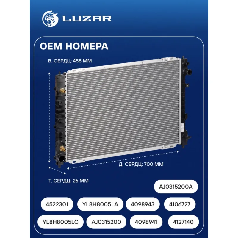 | Сопутствующий товар: Радиаторы кондиционера (конденсеры) | LRAC 1072 |