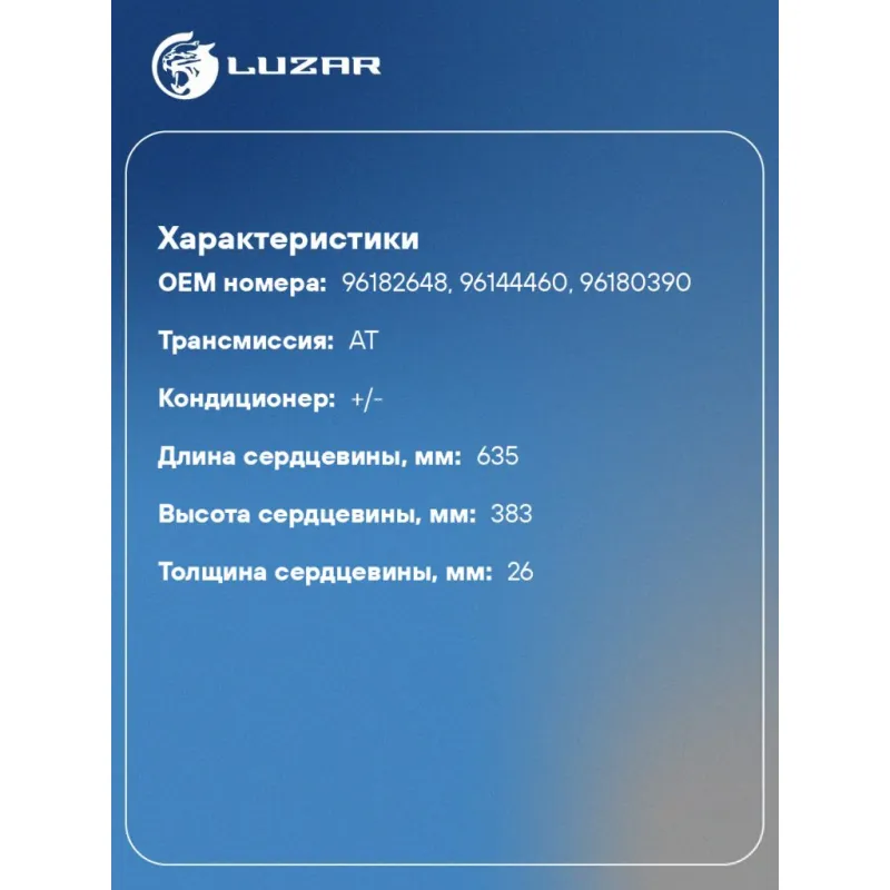 Радиатор охлаждения для автомобилей Espero AT LRc DWEs94248 LUZAR