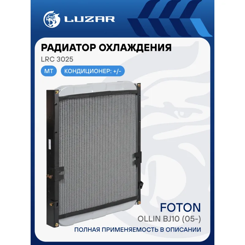 Радиатор охлаждения для автомобилей Foton Ollin BJ10 (05-) c двиг. Perkins 4.0D Характеристики: Артикул: LRc 3025 OEM номера: 1106913100033 Трансмиссия: MT Кондиционер: +/- Длина сердцевины, мм: 588 Высота сердцевины, мм: 508 Толщина сердцевины, мм: 48 Тип сердцевины: паяная Материал сердцевины: алюминий Материал бачков: алюминий Тип конструкции: без диффузора Подходит для авто: Foton Ollin BJ10 (05-) Для проверки применяемости отправьте VIN автомобиля через вкладку "Есть вопросы о товаре?" Комплектация: Радиатор охлаждения Паспорт изделия Кронштейны крепления металлические Гарантия: от 1 года.