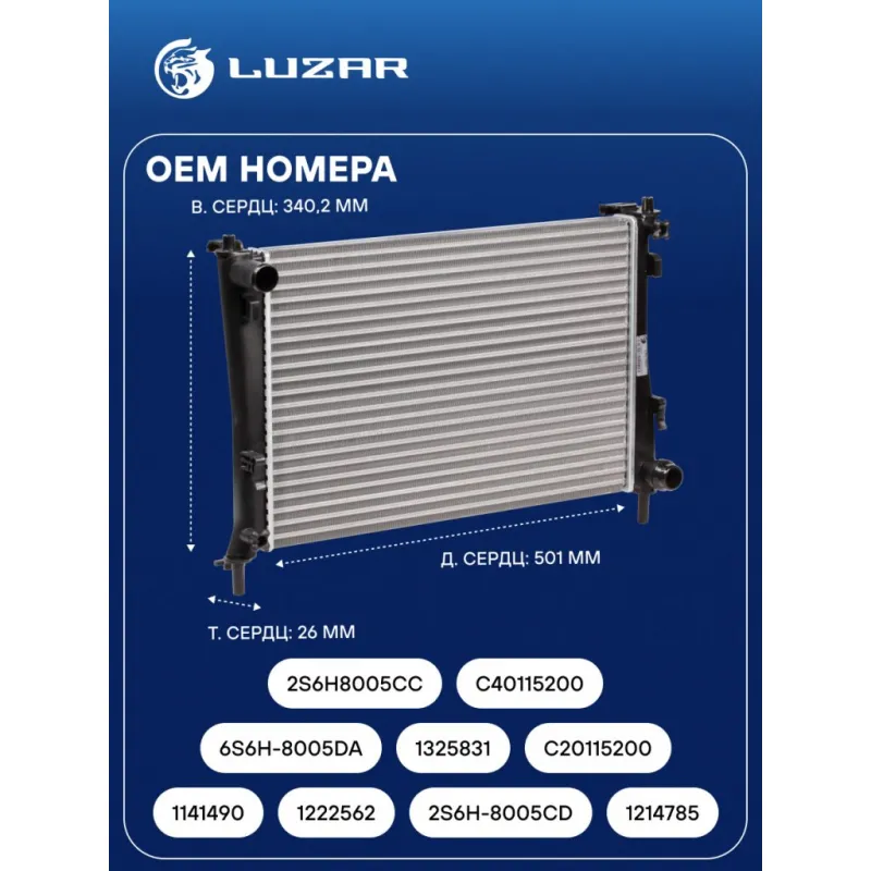Радиатор охлаждения для автомобилей Fusion (02-)/Fiesta (01-) M/A (сборный) Характеристики: Артикул: LRc 1031 OEM номера: 1141490, 1222562, 2S6H-8005CD, 1214785, 6S6H-8005DA, 1325831, C20115200, 2S6H8005CC, C40115200, ME4S6H8005DA, 1897432 Трансмиссия: MT/AT Кондиционер: +/- Длина сердцевины, мм: 501 Высота сердцевины, мм: 340.2 Толщина сердцевины, мм: 26 Сопутствующий товар: Патрубки охлаждения (комплект): LPK 10311, LPK 10312 Аналог: LRc 1014 (паяная сердцевина) Подходит для авто: Ford Fusion (02-), Fiesta (01-) Mazda 2 (03-) Для проверки применяемости отправьте VIN автомобиля через вкладку "Есть вопросы о товаре?" Комплектация: Радиатор охлаждения Паспорт изделия Гарантия: от 1 года.