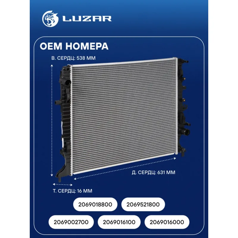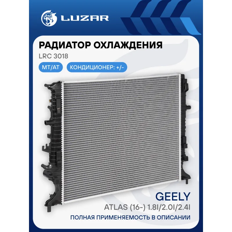 Радиатор охлаждения для автомобилей Geely Atlas (16-) 1.8i/2.0i/2.4i Характеристики: Артикул: LRc 3018 OEM номера: 2069002700, 2069016100, 2069016000, 2069018800, 2069521800 Трансмиссия: MT/AT Кондиционер: +/- Длина сердцевины, мм: 631 Высота сердцевины, мм: 538 Толщина сердцевины, мм: 16 Тип сердцевины: паяная Материал сердцевины: алюминий Материал бачков: пластик Сопутствующий товар: Электровентиляторы охлаждения: LFK 3013 Сопутствующий товар: Радиаторы кондиционера (конденсеры): LRAC 3018 Подходит для авто: Geely Atlas (16-) Для проверки применяемости отправьте VIN автомобиля через вкладку "Есть вопросы о товаре?" Комплектация: Радиатор охлаждения Паспорт изделия Гарантия: от 1 года.