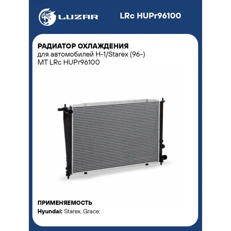 Радиатор охлаждения для автомобилей H-1/Starex (96-) MT Характеристики: Артикул: LRc HUPr96100 OEM номера: 25310-4A100, 25310-4A010, 25310-4A110 Материал сердцевины: алюминий Материал бачков: пластик Тип сердцевины: паяная Трансмиссия: MT Кондиционер: +/- Длина сердцевины, мм: 650 Высота сердцевины, мм: 440 Толщина сердцевины, мм: 26 Сопутствующий товар: Крышки (пробки) радиатора: LL 0809 Подходит для авто: Hyundai Starex (H-1) (96-), Grace (93-) Для проверки применяемости отправьте VIN автомобиля через вкладку "Есть вопросы о товаре?" Комплектация: Радиатор охлаждения Паспорт изделия Гарантия: от 1 года.
