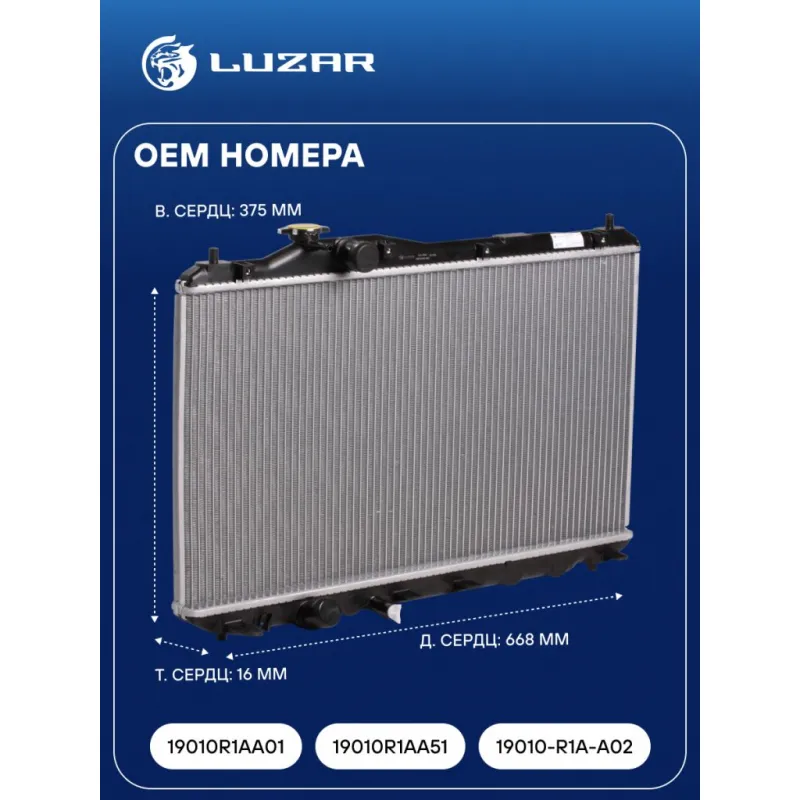 Радиатор охлаждения для автомобилей Honda Civic 4D (12-) M/A Характеристики: Артикул: LRc 2312 OEM номера: 19010R1AA01, 19010R1AA51, 19010-R1A-A02 Трансмиссия: MT/AT Кондиционер: +/- Длина сердцевины, мм: 668 Высота сердцевины, мм: 375 Толщина сердцевины, мм: 16 Сопутствующий товар: Крышки (пробки) радиатора: LL 1902 Подходит для авто: Honda Civic IX (11-) Для проверки применяемости отправьте VIN автомобиля через вкладку "Есть вопросы о товаре?" Комплектация: Радиатор охлаждения Паспорт изделия Гарантия: от 1 года.