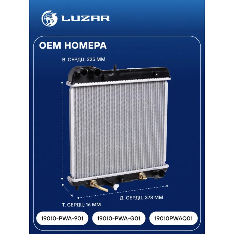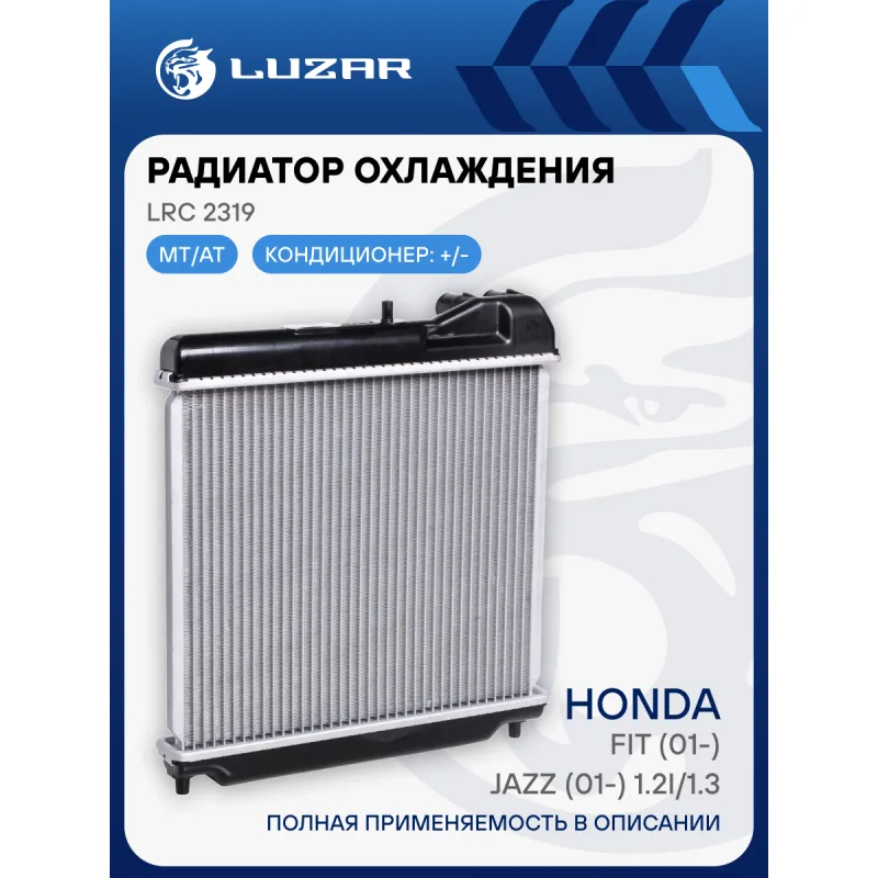 Радиатор охлаждения для автомобилей Honda Fit (01-)/Jazz (01-) 1.2i/1.3i M/A LRc 2319 LUZAR