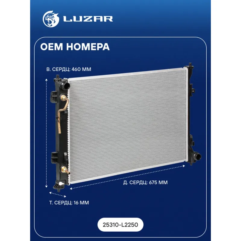 Радиатор охлаждения для автомобилей K5 (20-) 2.0i/2.5i Характеристики: Артикул: LRc 0880 OEM номера: 25310-L2250 Трансмиссия: AT Кондиционер: +/- Длина сердцевины, мм: 675 Высота сердцевины, мм: 460 Толщина сердцевины, мм: 16 Тип сердцевины: паяная Подходит для авто: Kia K5 III (20-) Для проверки применяемости отправьте VIN автомобиля через вкладку "Есть вопросы о товаре?" Комплектация: Радиатор охлаждения Паспорт изделия Гарантия: от 1 года.