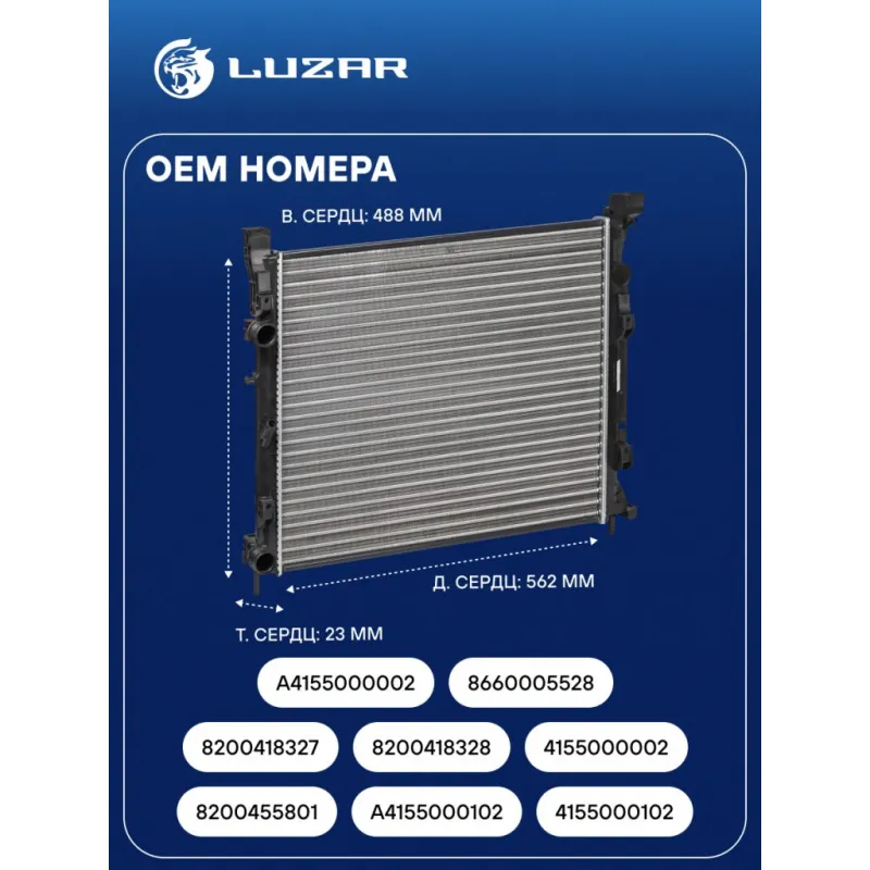 Радиатор охлаждения для автомобилей Kangoo (07-) 1.5D/1.6i AC+ Характеристики: Артикул: LRc 0973 OEM номера: 8200 455 801, A4155000102, 4155000102, 8200418327, 8200418328, 4155000002, A4155000002, 8660005528 Трансмиссия: MT/AT Кондиционер: +/- Длина сердцевины, мм: 562 Высота сердцевины, мм: 488 Толщина сердцевины, мм: 23 Сопутствующий товар: Крышки (пробки) расширительного бачка: LL 0998 Подходит для авто: Mercedes-Benz Citan W415 (12-) Renault Kangoo II (07-) Для проверки применяемости отправьте VIN автомобиля через вкладку "Есть вопросы о товаре?" Комплектация: Радиатор охлаждения Паспорт изделия Гарантия: от 1 года.