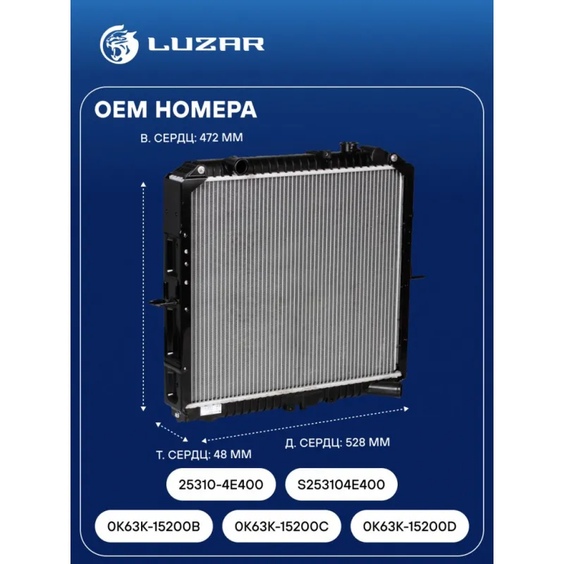Радиатор охлаждения для автомобилей Kia K-Series (Bongo) (99-)/(04-) 2.5D Характеристики: Артикул: LRc 0822 OEM номера: 0K63K-15200B, 0K63K-15200C, 0K63K-15200D, 25310-4E400, S253104E400 Трансмиссия: MT Кондиционер: +/- Длина сердцевины, мм: 528 Высота сердцевины, мм: 472 Толщина сердцевины, мм: 48 Сопутствующий товар: Крышки (пробки) радиатора: LL 0809 Подходит для авто: Kia K-Series (99-), K-Series (04-) Для проверки применяемости отправьте VIN автомобиля через вкладку "Есть вопросы о товаре?" Комплектация: Радиатор охлаждения Паспорт изделия Гарантия: от 1 года.