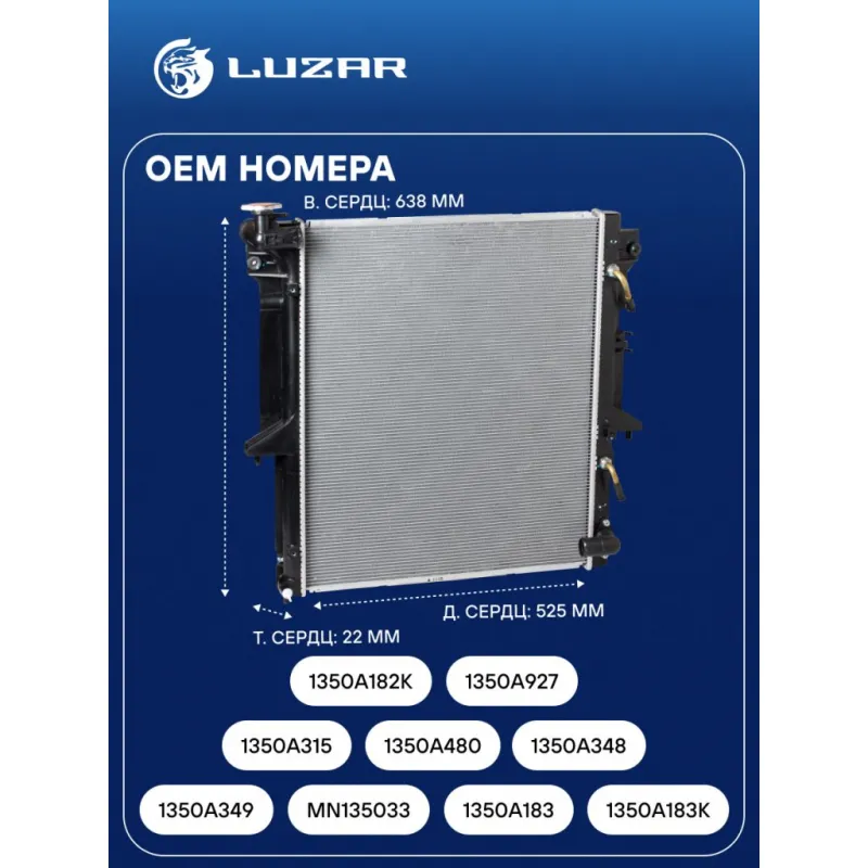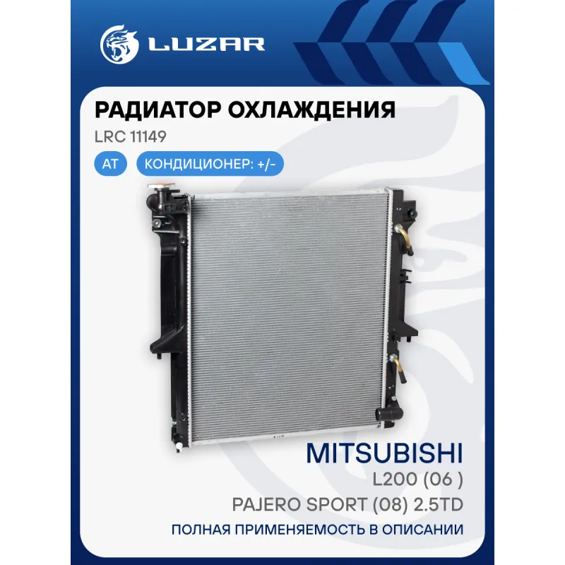 Радиатор охлаждения для автомобилей L200 (06-)/Pajero Sport (08-) 2.5TD AT Характеристики: Артикул: LRc 11149 OEM номера: 1350A349, MN 135033, 1350A183, 1350A183K, 1350A315, 1350A480, 1350A348, 1350A182K, 1350A927, 1350A998, 1350A923 Трансмиссия: AT Кондиционер: +/- Длина сердцевины, мм: 525 Высота сердцевины, мм: 638 Толщина сердцевины, мм: 22 Сопутствующий товар: Радиаторы кондиционера (конденсеры): LRAC 1148 Сопутствующий товар: Крышки (пробки) радиатора: LL 1902 Подходит для авто: Mitsubishi L200 (06-), Pajero Sport (08-) Для проверки применяемости отправьте VIN автомобиля через вкладку "Есть вопросы о товаре?" Комплектация: Радиатор охлаждения Паспорт изделия Гарантия: от 1 года.