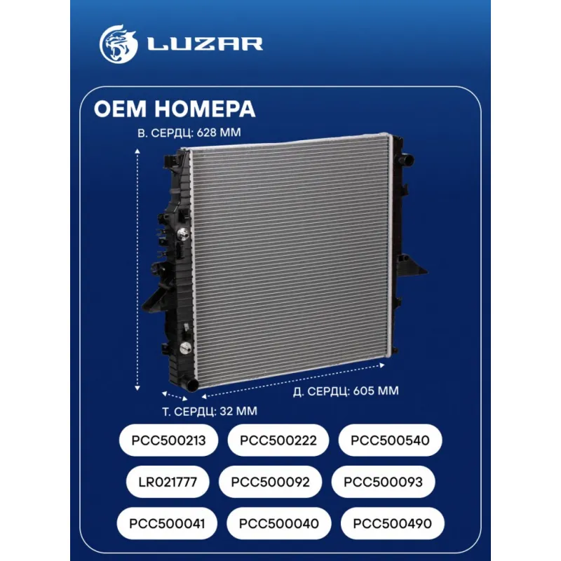 Радиатор охлаждения для автомобилей Land Rover Discovery (04-)/Range Rover Sport I (05-) 4.0i/4.2i/4.4i Характеристики: Артикул: LRc 10159 OEM номера: PCC500041, PCC500040, PCC500490, LR021777, PCC500092, PCC500093, PCC500213, PCC500222, PCC500540, PCC500550, PCC500630, PCC500680 Трансмиссия: MT/AT Кондиционер: +/- Длина сердцевины, мм: 605 Высота сердцевины, мм: 628 Толщина сердцевины, мм: 32 Сопутствующий товар: Радиаторы кондиционера (конденсеры): LRAC 10159 Подходит для авто: Land Rover Range Rover Sport I (05-), Discovery III (04-) Для проверки применяемости отправьте VIN автомобиля через вкладку "Есть вопросы о товаре?" Комплектация: Радиатор охлаждения Паспорт изделия Гарантия: от 1 года.