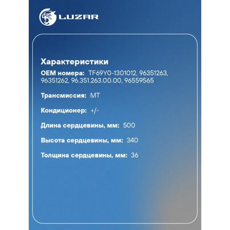 | Сопутствующий товар: Радиаторы кондиционера (конденсеры) | LRAC CHLs0235 |