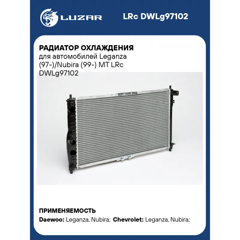 Радиатор охлаждения для автомобилей Leganza (97-)/Nubira (99-) MT LRc DWLg97102 LUZAR