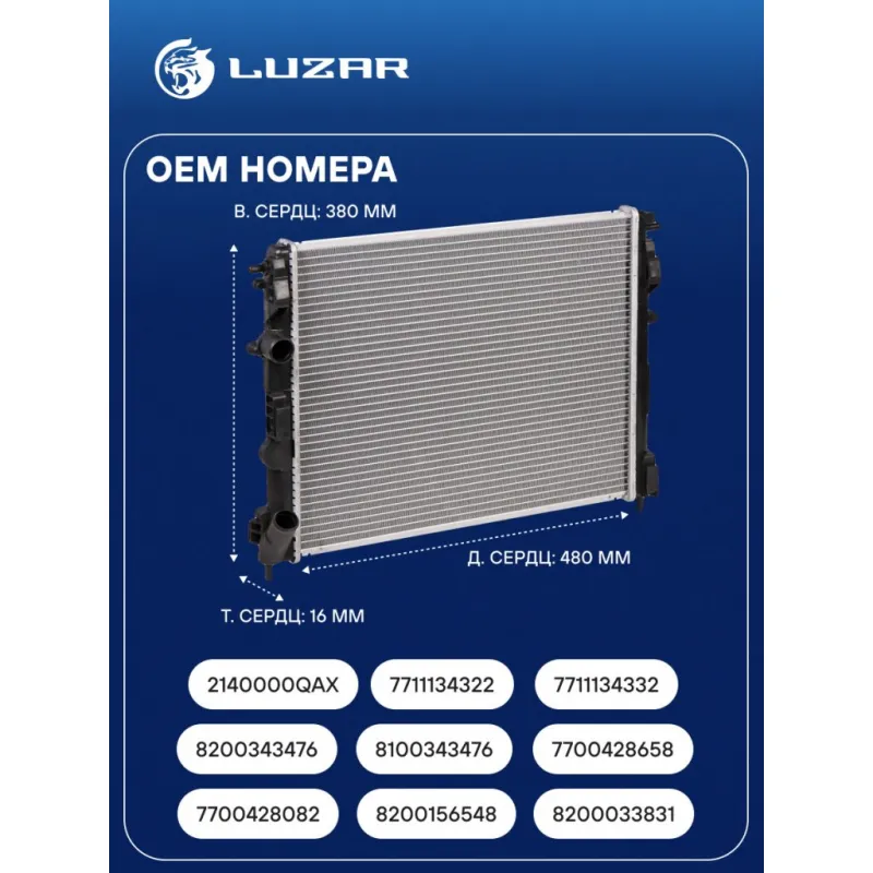 Радиатор охлаждения для автомобилей Logan (04-) 1.4i/1.6i А/С+ (паяный) Характеристики: Артикул: LRc 0905 OEM номера: 7700428082, 8200156548, 8200033831, 8200343476, 8100343476, 7700428658, 2140000QAX, 7711134322, 7711134332, 6001545765 Сопутствующий товар: Патрубки охлаждения (комплект): LPK 09051, LPK 09052 Трансмиссия: MT/AT Кондиционер: +/- Длина сердцевины, мм: 480 Высота сердцевины, мм: 388 Толщина сердцевины, мм: 16 Тип сердцевины: паяная Сопутствующий товар: Электровентиляторы охлаждения: LFc 0951; LFc 0952; LFc 0955; LFc 0966; LFc 0969; LFc 0970; LFK 09198 Сопутствующий товар: Радиаторы кондиционера (конденсеры): LRAC 0926; LRAC 0927; LRAC 0961; LRAC RELo04360 Сопутствующий товар: Крышки (пробки) расширительного бачка: LL 0998 Аналог: LRc RELo04382 (сборная сердцевина) Подходит для авто: Renault Kangoo (97-), Sandero I (09-), Sandero I (09-), Symbol II (08-), Symbol II (08-), Logan (04-), Clio II (98-), Clio Symbol (01-), Symbol (01-), Symbol II (08-) Dacia Logan (04-) Для проверки применяемости отправьте VIN автомобиля через вкладку "Есть вопросы о товаре?" Комплектация: Радиатор охлаждения Паспорт изделия Гарантия: от 1 года.