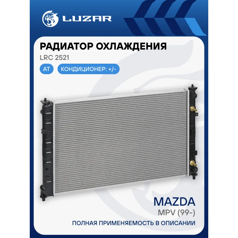 Радиатор охлаждения для автомобилей Mazda MPV (99-) AT Характеристики: Артикул: LRc 2521 OEM номера: GY01-15-200B, GY01-15-200D, GY03-15-200B Трансмиссия: AT Кондиционер: +/- Длина сердцевины, мм: 690 Высота сердцевины, мм: 458 Толщина сердцевины, мм: 16 Тип сердцевины: паяная Материал сердцевины: алюминий Материал бачков: пласт... Читать полностью →