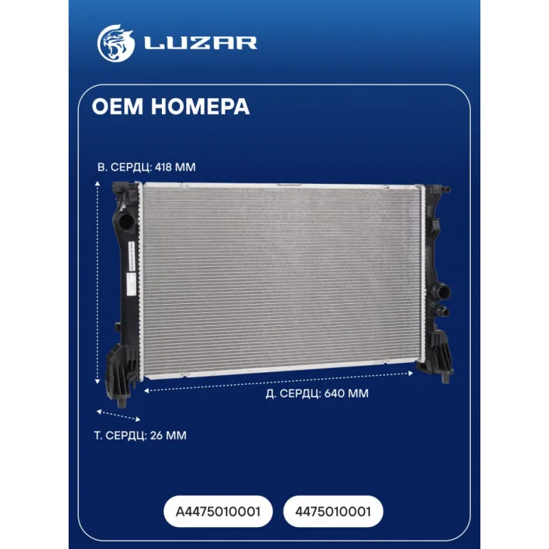 Радиатор охлаждения для автомобилей MB Vito/Viano (W447) (14-) 2.1D Характеристики: Артикул: LRc 1507 OEM номера: A4475010001, 4475010001 Трансмиссия: MT/AT Кондиционер: +/- Длина сердцевины, мм: 690 Высота сердцевины, мм: 418 Толщина сердцевины, мм: 26 Тип сердцевины: паяная Материал сердцевины: алюминий Материал бачков: пластик Подходит для авто: Mercedes-Benz Vito (W447) (14-), V-Class (W447) (14-) Для проверки применяемости отправьте VIN автомобиля через вкладку "Есть вопросы о товаре?" Комплектация: Радиатор охлаждения Паспорт изделия Гарантия: от 1 года.