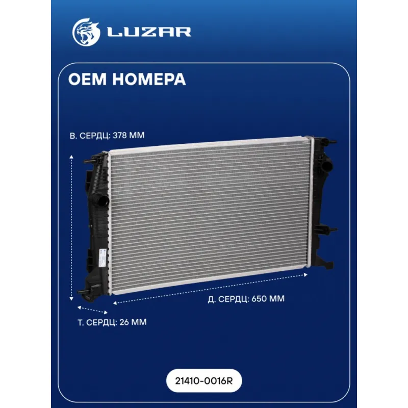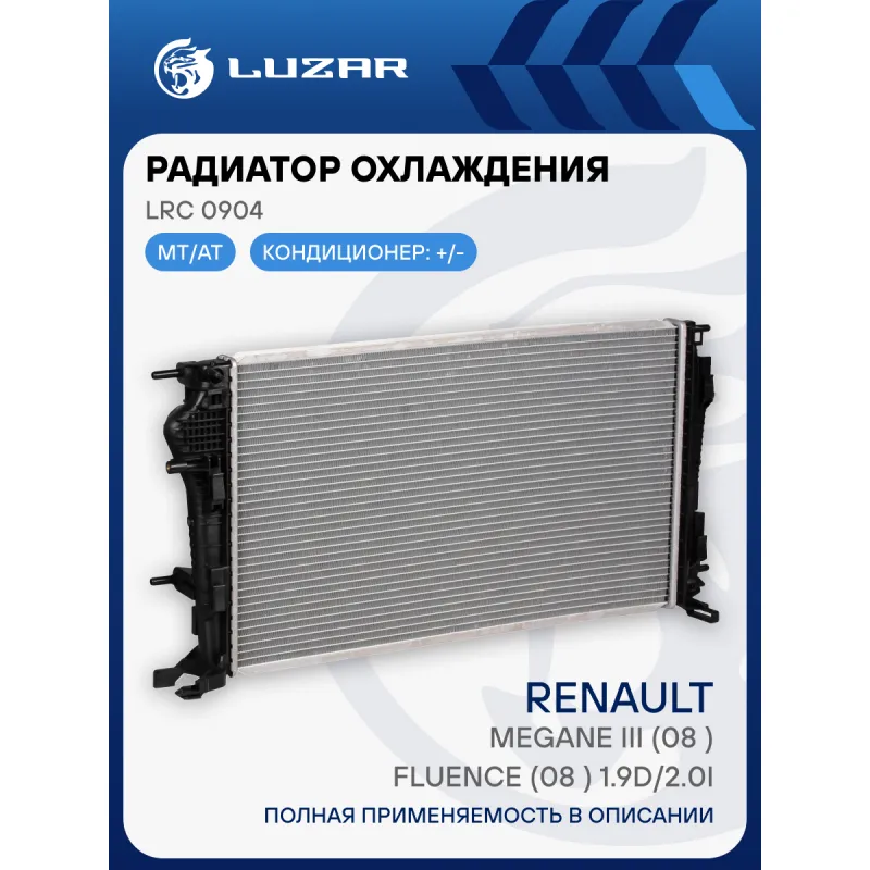 Радиатор охлаждения для автомобилей Megane III (08-)/Fluence (08-) 1.9D/2.0i M/A LRc 0904 LUZAR