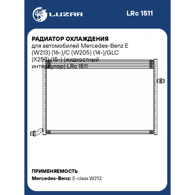 Радиатор охлаждения для автомобилей Mercedes-Benz E (W213) (16-)/C (W205) (14-)/GLC (X253) (15-) (жидкостный интеркулер) LRc 1511 LUZAR