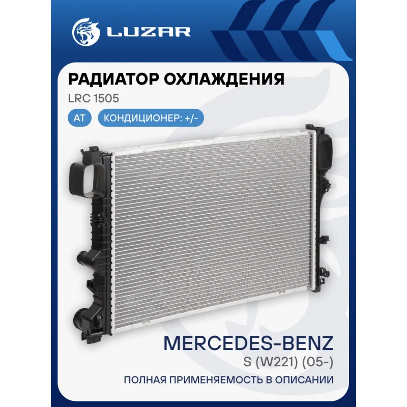 Радиатор охлаждения для автомобилей Mercedes-Benz S (W221) (05-) [M273; OM629] (рестайл. 09-) Характеристики: Артикул: LRc 1505 OEM номера: 2215003203, A2215003203 Трансмиссия: AT Кондиционер: +/- Длина сердцевины, мм: 640 Высота сердцевины, мм: 448 Толщина сердцевины, мм: 32 Тип сердцевины: паяная Материал сердцевины: алюминий Материал бачков: пластик Сопутствующий товар: Электровентиляторы охлаждения: LFK 15221 Подходит для авто: Mercedes-Benz S-Class W221 (05-) Для проверки применяемости отправьте VIN автомобиля через вкладку "Есть вопросы о товаре?" Комплектация: Радиатор охлаждения Паспорт изделия Гарантия: от 1 года.