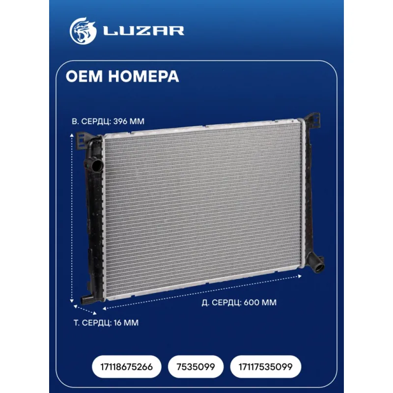 Радиатор охлаждения для автомобилей MINI Cooper (06-)/Countryman (10-)/Clubman (07-) LRc 2601 LUZAR