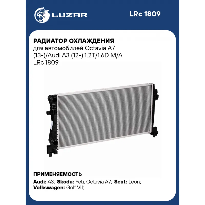Радиатор охлаждения для автомобилей Octavia A7 (13-)/Audi A3 (12-) 1.2T/1.6D M/A LRc 1809 LUZAR