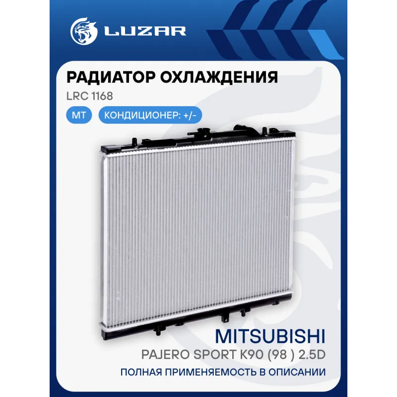 Радиатор охлаждения для автомобилей Pajero Sport K90 (98-) 2.5D MT Характеристики: Артикул: LRc 1168 OEM номера: MR464265 Трансмиссия: MT Кондиционер: +/- Длина сердцевины, мм: 628 Высота сердцевины, мм: 500 Толщина сердцевины, мм: 26 Сопутствующий товар: Радиаторы кондиционера (конденсеры): LRAC 1126 Сопутствующий товар: Крышки (пробки) радиатора: LL 1903 Подходит для авто: Mitsubishi Pajero Sport K90 (98-) Для проверки применяемости отправьте VIN автомобиля через вкладку "Есть вопросы о товаре?" Комплектация: Радиатор охлаждения Паспорт изделия Гарантия: от 1 года.