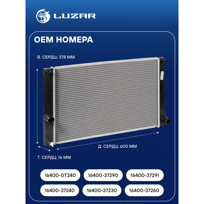 Радиатор охлаждения для автомобилей Prius (09-)/Lexus CT200h (10-) 1.8H Характеристики: Артикул: LRc 1979 OEM номера: 16400-37240, 16400-37230, 16400-37260, 16400-0T240, 16400-37290, 16400-37291 Трансмиссия: AT Кондиционер: +/- Длина сердцевины, мм: 600 Высота сердцевины, мм: 378 Толщина сердцевины, мм: 16 Тип сердцевины: паяная Подходит для авто: Toyota Prius III (09-), Auris (06-), Auris II (12-) Lexus CT200h (10-) Для проверки применяемости отправьте VIN автомобиля через вкладку "Есть вопросы о товаре?" Комплектация: Радиатор охлаждения Паспорт изделия Гарантия: от 1 года.