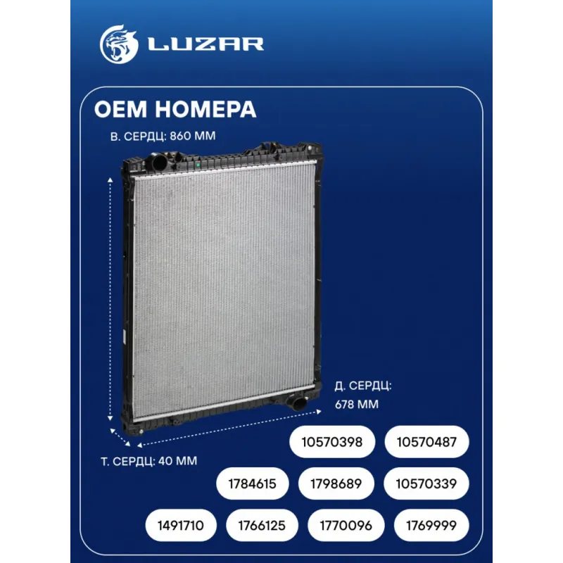 Радиатор охлаждения для автомобилей Scania 5 (P-series) (04-) (с рамкой) Характеристики: Артикул: LRc 2803 OEM номера: 1491710, 1766125, 1770096, 1769999, 1784615, 1798689, 10570339, 10570398, 10570487 Трансмиссия: MT Кондиционер: +/- Длина сердцевины, мм: 678 Высота сердцевины, мм: 860 Толщина сердцевины, мм: 40 Материал бачков: пластик Тип конструкции: с металлической рамкой Подходит для авто: Scania P-serie (04-), P-serie (04-) Для проверки применяемости отправьте VIN автомобиля через вкладку "Есть вопросы о товаре?" Комплектация: Радиатор охлаждения Паспорт изделия Гарантия: от 1 года.