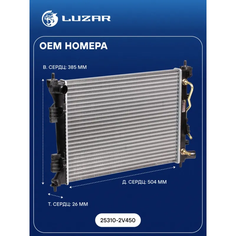 Радиатор охлаждения для автомобилей Solaris (10-)/Kia Rio (10-) 6AT (сборный) Характеристики: Артикул: LRc 081V4 OEM номера: 25310-2V450 Трансмиссия: 6AT Кондиционер: +/- Длина сердцевины, мм: 504 Высота сердцевины, мм: 385 Толщина сердцевины, мм: 26 Тип сердцевины: сборная Сопутствующий товар: Электровентиляторы охлаждения: LFK 08L0 Сопутствующий товар: Радиаторы кондиционера (конденсеры): LRAC 08L4 Сопутствующий товар: Патрубки охлаждения (комплект): LPK 08031, LPK 08032, LPK 08033 Сопутствующий товар: Блоки охлаждения (радиатор + конденсор + вентилятор): LRK 081V4; LRK 08L4 Аналог: LRc 0803 (паяная сердцевина) Примечание: диаметр трубок маслоохладителя АКПП 10мм., подходит для авто с АКПП 6ст. Подходит для авто: Kia Rio III (11-) Hyundai Solaris I (10-) Для проверки применяемости отправьте VIN автомобиля через вкладку "Есть вопросы о товаре?" Комплектация: Радиатор охлаждения Паспорт изделия Гарантия: от 1 года.