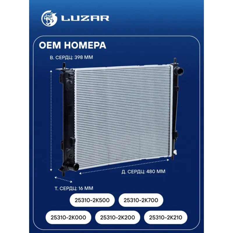 Радиатор охлаждения для автомобилей Soul (08-) D MT LRc 08K2 LUZAR