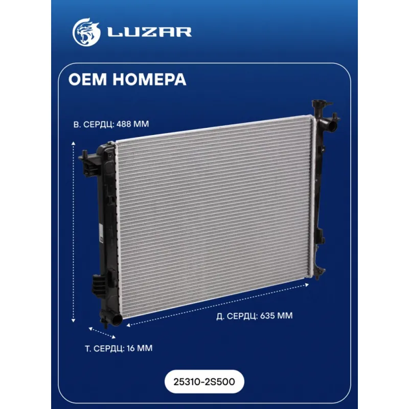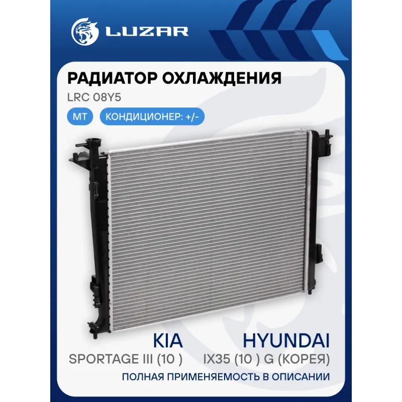 Радиатор охлаждения для автомобилей Sportage III (10-)/iX35 (10-) G MT (Корея) Характеристики: Артикул: LRc 08Y5 OEM номера: 25310-2S500 Трансмиссия: MT Кондиционер: +/- Длина сердцевины, мм: 635 Высота сердцевины, мм: 488 Толщина сердцевины, мм: 16 Сопутствующий товар: Электровентиляторы охлаждения: LFK 08S5; LFK 08Y5 Сопутствующий товар: Радиаторы кондиционера (конденсеры): LRAC 08S5; LRAC 08Y5 Сопутствующий товар: Крышки (пробки) радиатора: LL 1905 Подходит для авто: Kia Sportage III (10-) Hyundai iX35 (10-) Для проверки применяемости отправьте VIN автомобиля через вкладку "Есть вопросы о товаре?" Комплектация: Радиатор охлаждения Паспорт изделия Гарантия: от 1 года.
