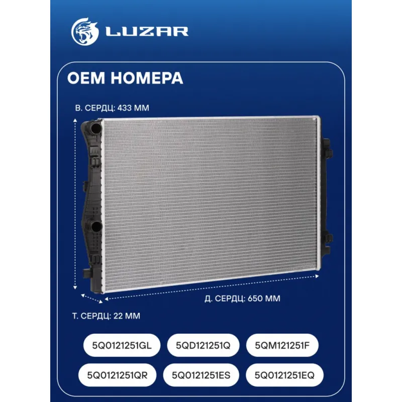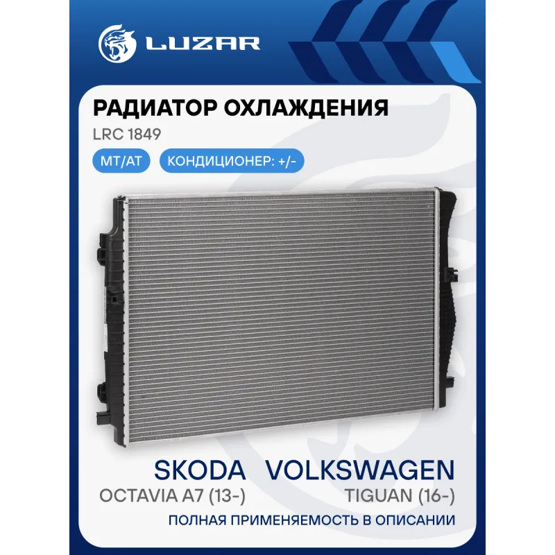 Радиатор охлаждения для автомобилей Tiguan (16-)/Octavia A7 (13-)/Kodiaq (16-) 1.4T/2.0TD Характеристики: Артикул: LRc 1849 OEM номера: 5Q0121251QR, 5Q0121251ES, 5Q0121251EQ, 5Q0121251GL, 5QD121251Q, 5QM121251F Сопутствующий товар: Элементы для уплотнения соединений: LGS 0032 Трансмиссия: MT/AT Кондиционер: +/- Длина сердцевины, мм: 650 Высота сердцевины, мм: 433 Толщина сердцевины, мм: 22 Тип сердцевины: паяная Материал сердцевины: алюминий Материал бачков: пластик Подходит для авто: Audi A3 (12-) Volkswagen Passat B8 (15-), Golf VII (12-), Passat B8 (15-), Tiguan (16-), Touran III (15-) Skoda Kodiaq (16-), Octavia A8 (20-), Karoq (17-), Kodiaq (16-), Octavia A7 (13-), Superb III (15-) Seat Leon (12-) Для проверки применяемости отправьте VIN автомобиля через вкладку "Есть вопросы о товаре?" Комплектация: Радиатор охлаждения Паспорт изделия Гарантия: от 1 года.