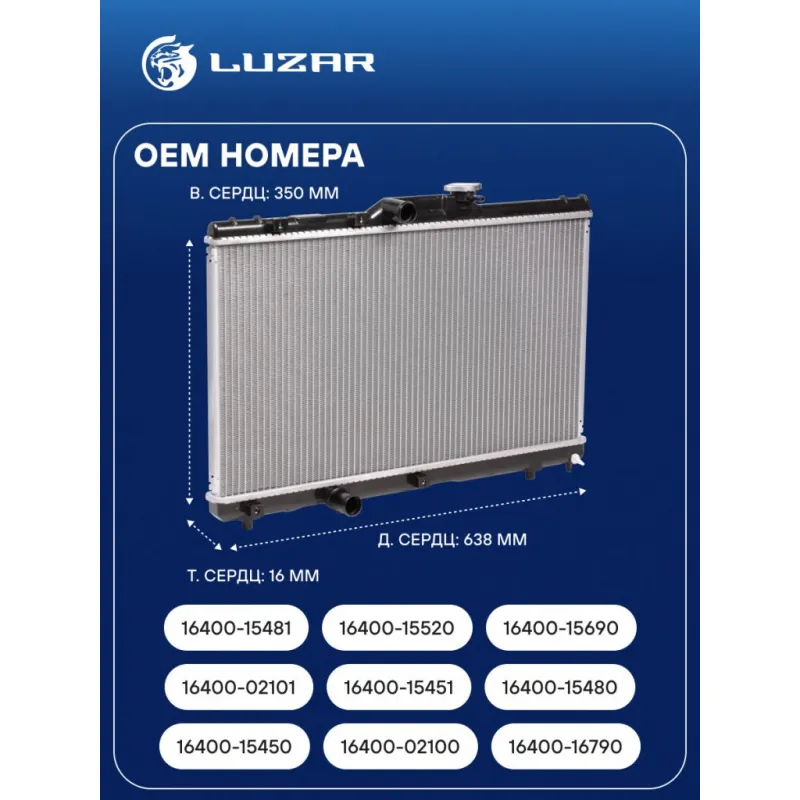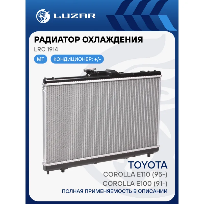 Радиатор охлаждения для автомобилей Toyota Corolla E100 (91-)/Corolla E110 (95-) MT Характеристики: Артикул: LRc 1914 OEM номера: 16400-15450, 16400-02100, 16400-16790, 16400-02101, 16400-15451, 16400-15480, 16400-15481, 16400-15520, 16400-15690, 16400-16491, 16400-16660, 16400-16680, 1640015521, 1640015680, 1640016490 Трансмиссия: MT Кондиционер: +/- Длина сердцевины, мм: 638 Высота сердцевины, мм: 350 Толщина сердцевины, мм: 16 Тип сердцевины: паяная Материал сердцевины: алюминий Материал бачков: пластик Сопутствующий товар: Крышки (пробки) радиатора: LL 1903 Подходит для авто: Toyota Corolla E100 (91-), Corolla E110 (95-), Corolla E110 (95-) Для проверки применяемости отправьте VIN автомобиля через вкладку "Есть вопросы о товаре?" Комплектация: Радиатор охлаждения Паспорт изделия Гарантия: от 1 года.