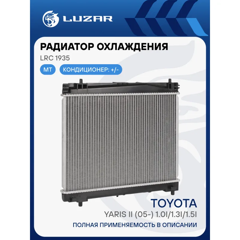 Радиатор охлаждения для автомобилей Toyota Yaris II (05-) 1.0i/1.3i/1.5i MT Характеристики: Артикул: LRc 1935 OEM номера: 16400-23170, 16400-0Q040, 16400-23160 Трансмиссия: MT Кондиционер: +/- Длина сердцевины, мм: 478 Высота сердцевины, мм: 350 Толщина сердцевины, мм: 16 Тип сердцевины: паяная Материал сердцевины: алюминий Материал бачков: пластик Сопутствующий товар: Радиаторы кондиционера (конденсеры): LRAC 1904 Подходит для авто: Toyota Yaris (05-) Для проверки применяемости отправьте VIN автомобиля через вкладку "Есть вопросы о товаре?" Комплектация: Радиатор охлаждения - 1 шт Паспорт изделия - 1 шт Гарантия: от 1 года.